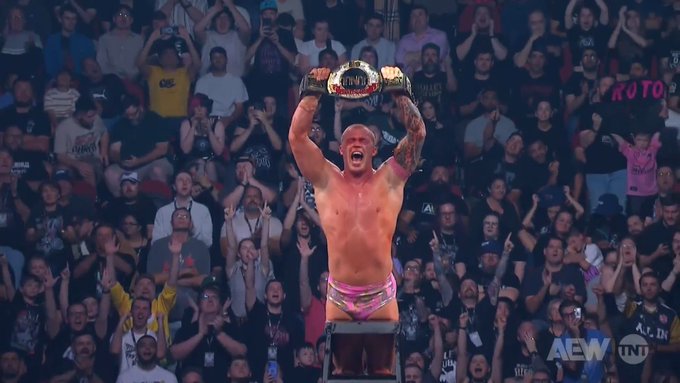 As he heavily winked at the camera to then debut a Pink TNT Championship after AEW Grand Slam Australia